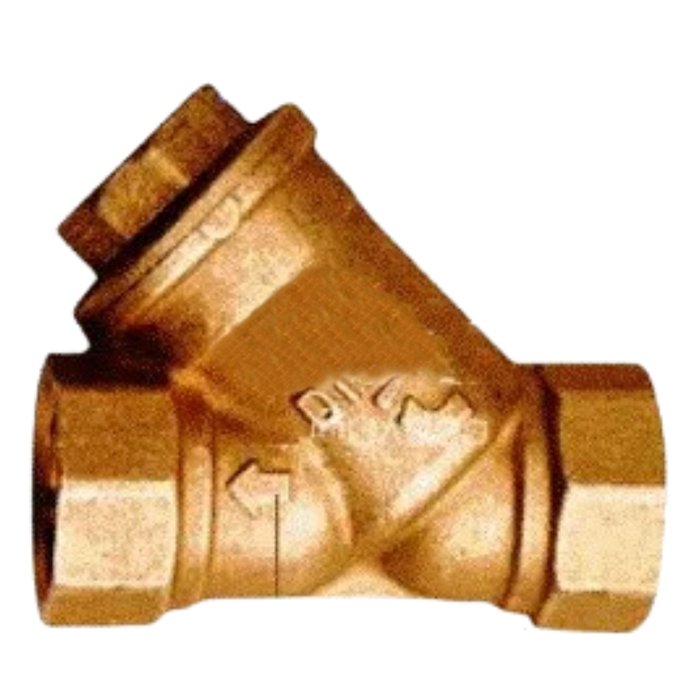 Elemento filtrante removível e lavável constituído por peneira em inox. Corpo em bronze com roscas em 3/4.