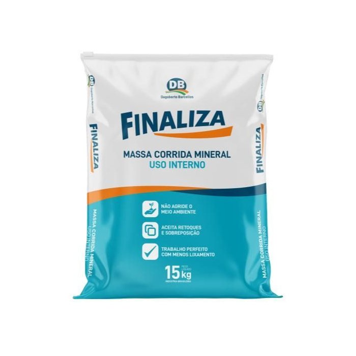 A Massa Corrida Mineral Finaliza Interna Pó Saco Massa é uma massa especial para acabamento liso, feita à base de material mineral natural. Pode ser aplicada em superfícies internas sobre reboco, concreto aparente, placas de fibrocimento e gesso (convencional e acartonado), superfícies calfinadas e em paredes já pintadas com tintas PVA ou acrílicas.