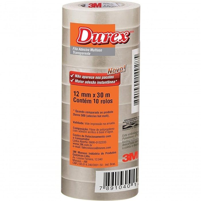 Fita Adesiva 12mm X 30m Durex Transparente 3m Pct C/10 Rolos