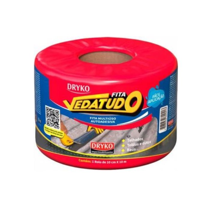 Fita Adesiva Impermeável com Manta Asfáltica 10cm X 10m Alumínio Vedatudo Dryko