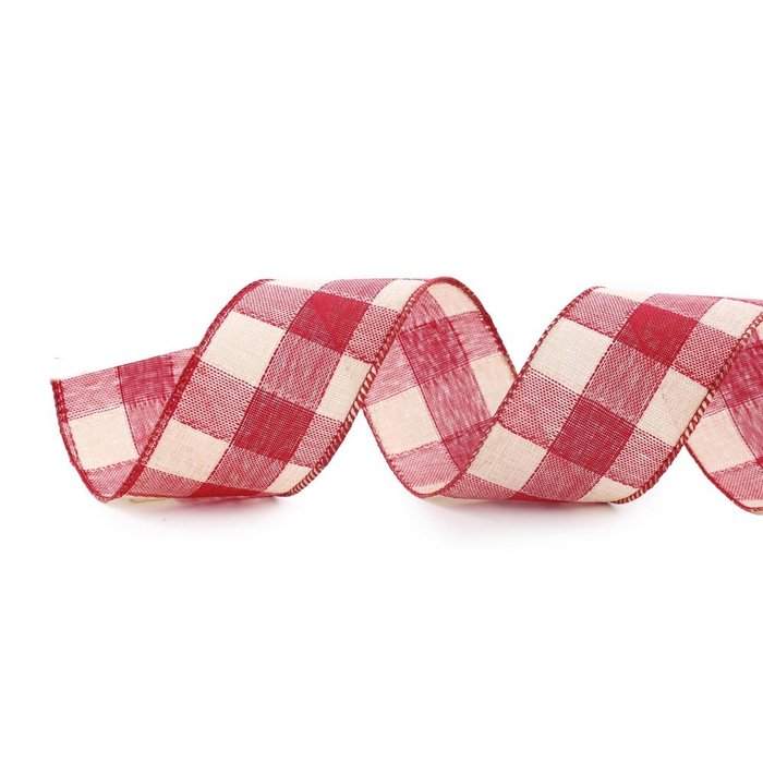 Fita Aramada Natalina Quadriculada Vermelha e Branco 9,14m