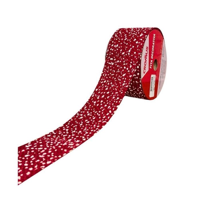 Fita Aramada Trabalhada Natalina Natal Vermelho e Branco 6,3x914cm Cromus