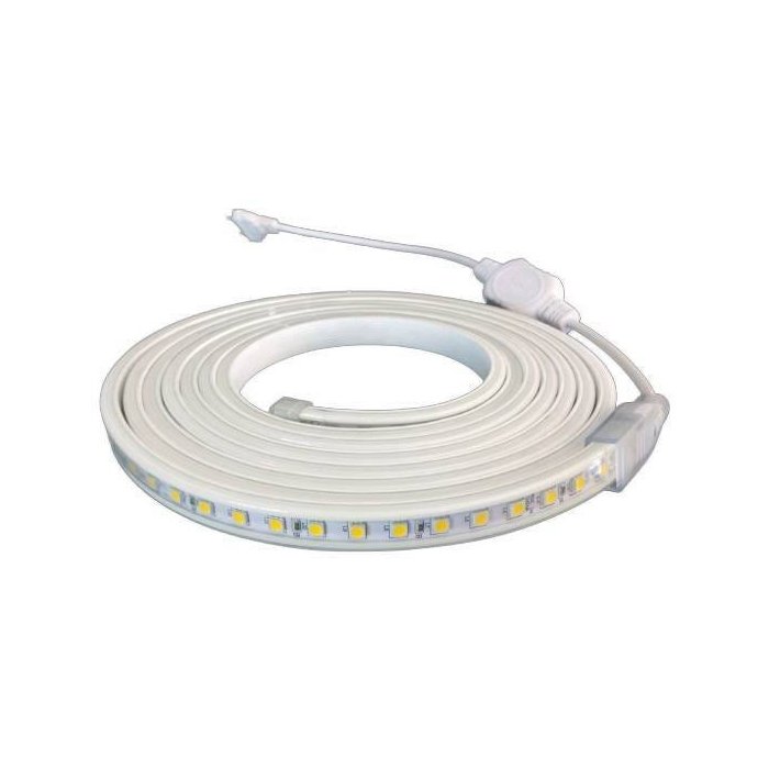 fita de led 4,8w/m quente 127v 5m c/ silicone Bella LP050 / potência 24w (4,8 w/m) / fluxo luminoso 1.100lm (220 lm/m) / eficiência luminosa 45lm/w / temperatura de cor 3.000K branca quente amarelada / IRC 75 / tensão 127V / ângulo de abertura 120° / 25.000 h residência 17 anos e comércio 5 anos / dimensões: larg. 1cm; alt. 0,7cm; comp. 500cm / proteção IP67 (silicone de alta resistência) / fita branca / led incorporado / led smd / fonte inclusa / 60 leds SMD3528 por metro / corte a cada 0,5m / 1 ano de garantia / Bella / LP050