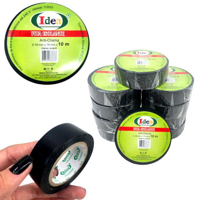FITA ISOLANTE ANTI CHAMA 18MM X 10M Especialmente desenvolvida para fornecer proteção confiável aos métodos de isolamento de emendas eletrônicas e elétricas, podendo ser utilizada para separar fisicamente os circuitos perigosos de usuários e outros equipamentos ao seu redor. INFORMAÇÕES DO PRODUTO Fabricada em PVC e Adesivo; Cor Preta; Dimensão de 18mm X 10 Metros. APLICAÇÃO Isolação De Fio e Cabos Elétricos até 240v. CONTEÚDO DA EMBALAGEM 01 Fita Isolante Anti Chama.