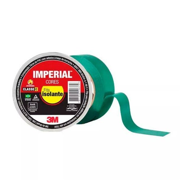 DetalhesBoa flexibilidade e conformabilidadeResistente a raios ultravioletasFácil de aplicar e manusearReduz a vulnerabilidadeRetardante a chamaBoa isolação elétricaTemperatura Máxima de Operação 90ºCA Fita Isolante é indicada para uso geral e doméstico. É ideal para pequenos reparos elétricos, reforço em cabos de ferramenta e manutenções provisórias.Possui boa isolação térmica e flexibilidade, é resistente a raios ultravioletas e reduz a vulnerabilidade dos materiais. É fácil de aplicar e de rasgar, garantindo bons resultados e conformabilidade. Esta fita não contém metais pesados, é retardante a chama e fabricada no Brasil. Sua classe de tensão é de 750 V, e a classe de temperatura é 90°C. Ela é constituída por um dorso vinilíco recoberto, com uma camada de adesivo à base de borracha sensível à pressão. Modo de aplicar: para isolamento, aplique quatro camadas da fita sempre alongada 50% e em meia sobreposição em cada volta. Termine a aplicação com sobreposição 100% sobre a própria fita.Aplicações SugeridasPequenos reparos;Conserto de eletrodomésticos, aparelhos eletrônicos, entre outros;Reforços em cabos de ferramenta;Manutenções provisórias.Ideal para instalações e reparos de eletrodomésticos em geralEspecificaçõesAdesão ao Ferro: 19 (21)Alongamento na ruptura: 180%Aplicação de Voltagem: Baixa VoltagemAuto-Aderência: NãoAuto-extinguível: NãoCertificado ABNT: SimClasse da Fita: EconomyFaixa da temperatura de operação: 0 °C to 90 °CMateriais: PVCMaterial Adesivo: Resina de BorrachaResistência a Produtos Químicos: SimResistência Dielétrica (V/mil): 1250Resistente aos Raios Ultra Violeta: SimRetardador das Chamas: SimTensão Nominal Máxima Recomendada: 750 VVulcanizante: NãoConteúdo da Embalagem: 1 Rolo de Fita Isolante Imperial