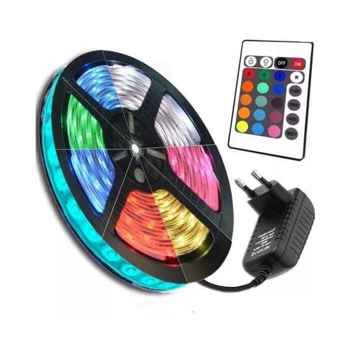 Fita Led 5050 Rgb Colorida 300 Led 12w / Metro sem Silicone Ip20 Rolo 5 Metros 12v + Fonte 2.5a