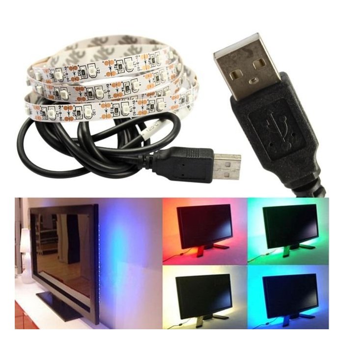 Fita Led 5050 Rgb Usb 3m Tv e Pc com Controle na Fita