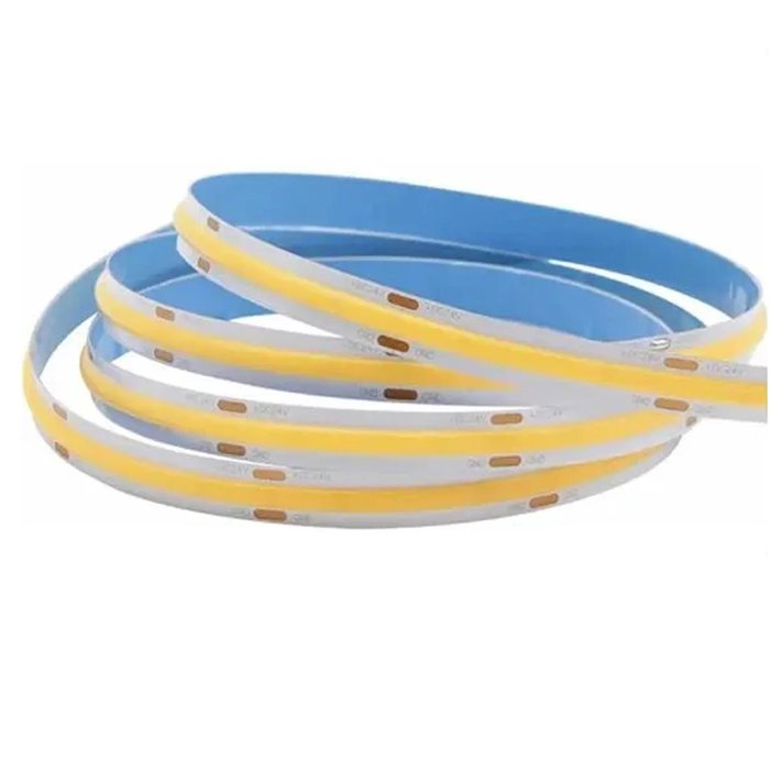 A versão COB (Chip on Board) de fitas LED identifica produtos onde o dispositivo LED é contínuo, isso é, ao invés de vários pontos de iluminação como em fitas comum, ele apresenta um dispositivo LED continuo atraves de todo o comprimento, permitindo uma maior qualidade de iluminaçao.