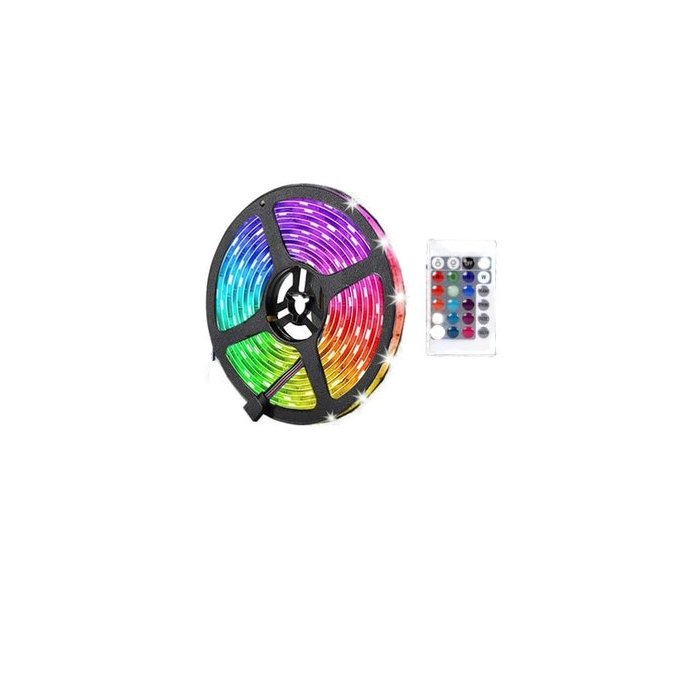 Kit com 5 metros de fita RGB com controladora e fonte. Ideal para decoração e alta luminosidade. Usada para decoração em ambientes e cômodos da casa, bem como uma iluminação colorida para corredores, escadas, janelas entre outras estruturas.