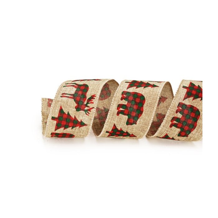 Fita Natalina Bege com Desenhos em Xadrez 6,3cm 9m 1 Peça