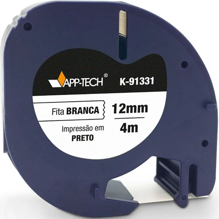 Fita para Rotulador Dymo 12mm x 4m Branca Escrita Preta App-tech