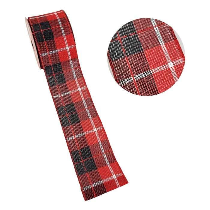 Fita Vermelha E Preta Xadrez 6cmx9m Natal Decorativa