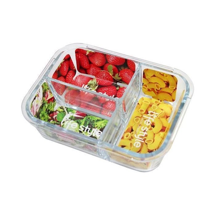 (fitness) Pote de Vidro Hermético Branco com 3 Divisórias 1000ml