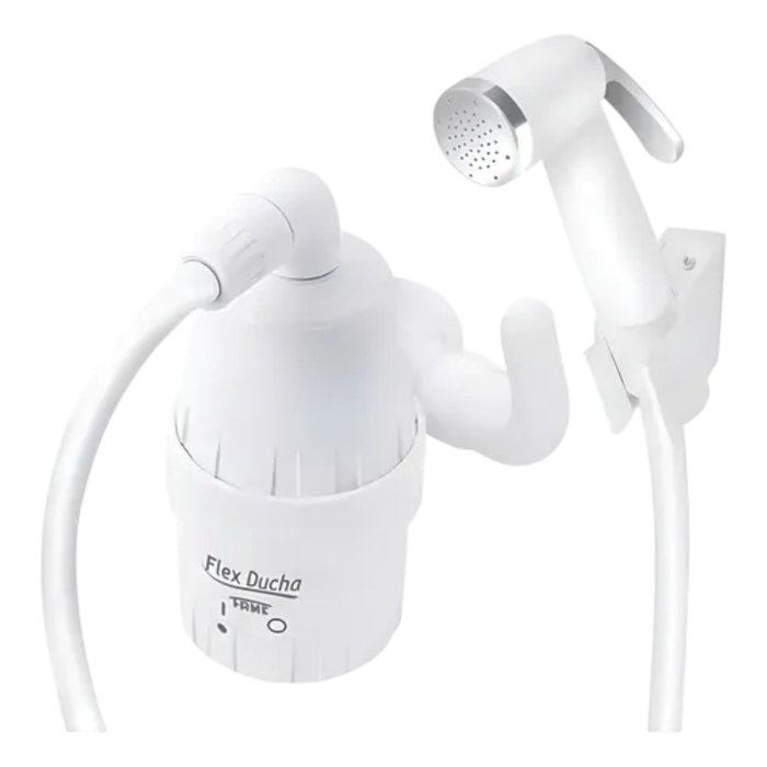 Ducha Higiênica Flex Ducha Fame BrancaTodos os nossos produtos são novos e originais, acompanham nota fiscal, que é enviada juntamente com a sua compra.Para uso em Residência, Salões de Beleza e Pet Shop.A Flex Ducha FAME, possui a temperatura ideal, proporcionando conforto e segurança para a higiene íntima.Possui mangueira de 1,20m de extensão, chave seletora liga-desliga, registro de segurança e ducha manual com três estágios de funcionamento.- Para uso de toda família: A melhor opção para higiêne íntima diária.- Instalação externa, rápida e fácil.Características do produto:- Marca: Fame- Compatível com DR: Sim- Compatível com Sistemas de Aquecimento: Sim- Dimensões AxLxP (mm): 170x75x155- Disjuntor (A): 20A (220V); 35A (127V)- Fios (mm2): 6mm (127V); 2,5mm (220V)- Cor: Branco- Potência: 4000W- Garantia: 1 ano junto ao fabricante- Pressão de Funcionamento: 20 a 200kPa (2 a 20mca)- Grau de Proteção: IP 24- Sistema de Aterramento: Sim- Material: Produzido em plásticoAcompanha o produto:1 Flex Ducha Fame1 Mangueira Flexível de 120cm1 Ducha Manual1 Manual de Instalação