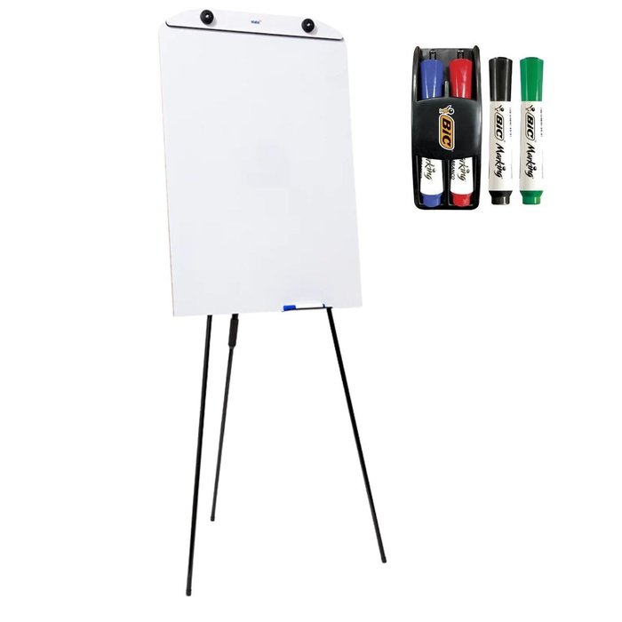 Flip Chart Quadro Branco 60x90cm Tripé Retrátil com 4 Marcadores e Apagador Azul, Vermelho, Preto, Verde