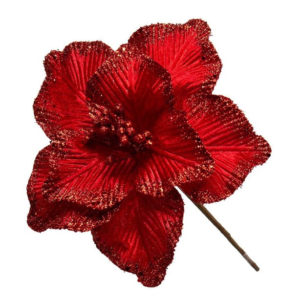 Flor Artificial Natalina Magnólia Vermelha de Veludo | Linha Natal Encantado Vermelha