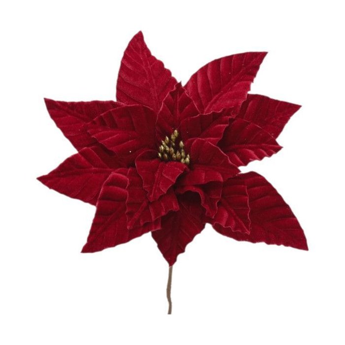 Flor de Natal Poinsetia ? Veludo Vermelho com Textura ? 25cm