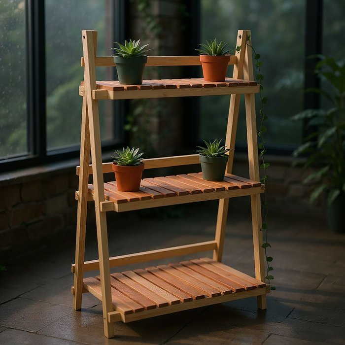 Ideal para decoração interna ou externa, a floreira em madeira maciça possui 3 prateleiras ripadas removíveis com trava de segurança. Estrutura dobrável, fácil de armazenar e transportar. Estilo rústico, durável e elegante para organizar vasos com charme natural.