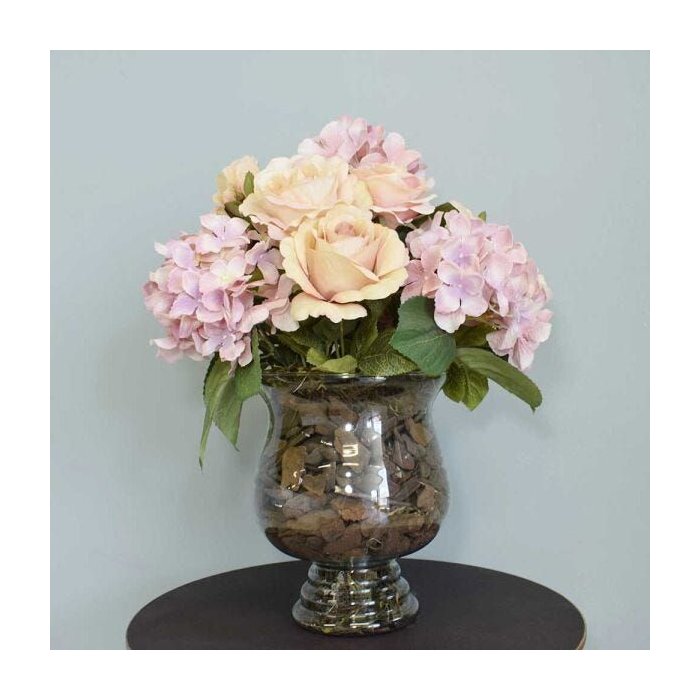 Flores Artificiais Arranjo de Rosas e Hortênsias Rosas no Vaso de Vidro|linha Permanente cores suaves e elegantes