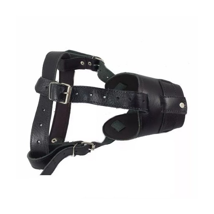 Focinheira Em Couro Várias Regulagens Cães Pitbull Outros Preta