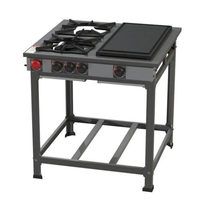 Fogão 2 Bocas 30 x 30 Baixa Pressão 1Qs 1Qd Semi-Industrial com Chapa e Painel - Itajobi Fogões