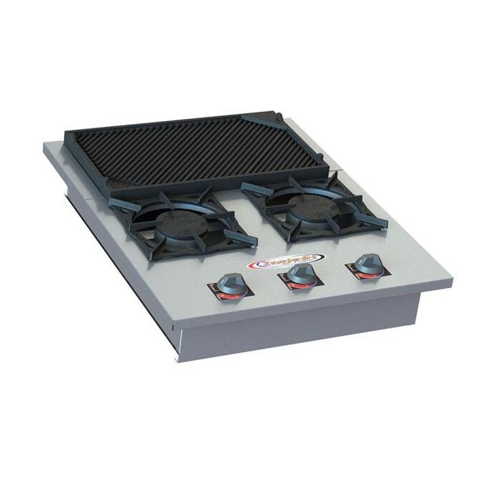 FOGÃO 2 BOCAS DE EMBUTIR COM CHAPEIRA BAIXA PRESSÃO 2 QUEIMADORES SIMPLES INOX O fogão 2 bocas de embutir baixa pressão é ideal para ser utilizado em chácaras, espaços gourmets, sítios, restaurantes, bares e muito mais. Sua estrutura é confeccionada em chapa de aço inox 430, proporcionando mais resistência ao fogão de alvenaria. Além disso, a tampa dos queimadores são esmaltadas, proporcionando mais resistência ao produto. Esse modelo de fogão 2 bocas cooktop é de baixa pressão, por isso é necessário o uso de válvula reguladora e o seus dois queimadores são simples. As grelhas do fogão 2 bocas de alvenaria são confeccionadas em ferro fundido e apresentam o formato de 8 dedos redondos 20x20 também possui botão palace de 5 posições para regulagem das chamas, conforme a necessidade de uso. Possui uma chapa para o preparo de alimentos grelhados com qualidade e sabor. Ao comprar o fogão 2 bocas de embutir baixa pressão com chapeira, você estará garantindo um equipamento completo e de alto desempenho para o seu negócio. Informações técnicas Modelo: SL13024-I Estrutura confeccionada em chapa de aço inox 430 Nº de queimadores: 2 queimadores simples 1 Chapeira Baixa pressão Medidas Altura: 12 cm Largura: 56,5 cm Comprimento: 69 cm Peso: 9kg