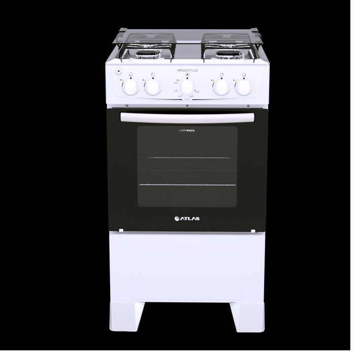 Fogão 4 bocas Atlas Mônaco Plus Branco Mesa inox e acendimento automático
