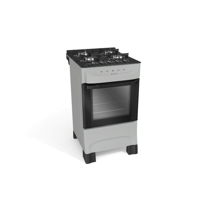 Praticidade e funcionalidade com tecla única para acendimento da mesa e do forno. Botões removíveis e sobrepostos a mesa, mais fáceis de limpar. Grades com 6 pontos de apoio e sistema exclusivo de encaixe, panelas firmes enquanto você cozinha. Mesa de vidro temperado, mais amplo. Possui dois queimadores Família e dois queimadores médios, com acabamento em de aço esmaltado. Forno total clean, tecnologia que facilita limpeza, visualização completa dos assados, com visor amplo. No forno possui uma grade ajustável em dois níveis de altura e válvula de segurança.