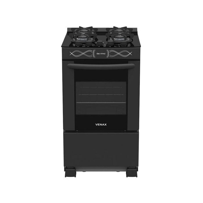 FOGAO 4 BOCAS VENAX DA VINCI VITREO PRETO GAS GLP Preto Fosco