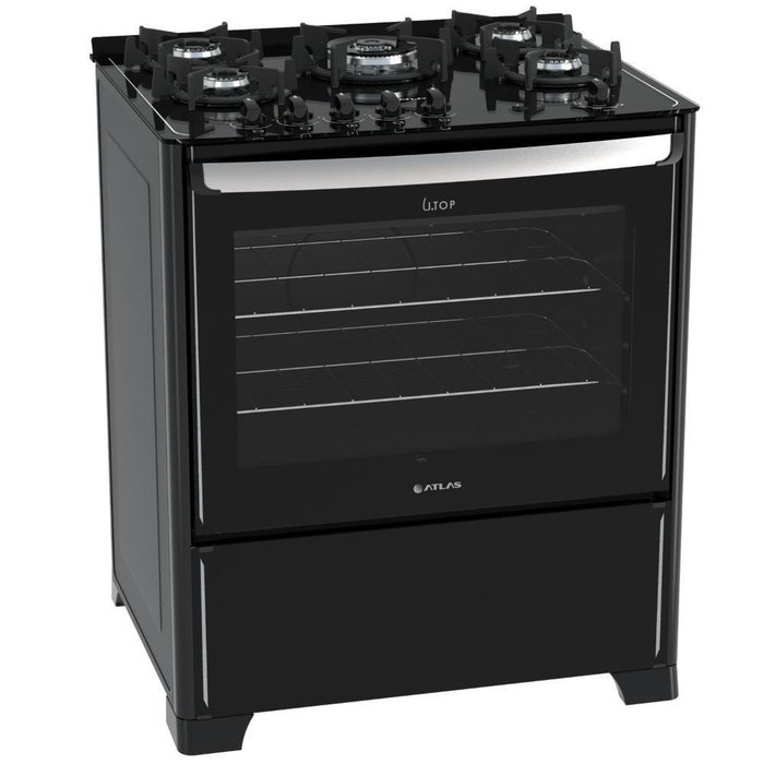 Fogão 5 Bocas Atlas New U.top Glass Preto Com Mesa Mesa De Vidro E Tripla ChamaMarca: Atlas