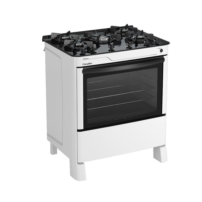 Fogão 5 Bocas Esmaltec Jade Glass Branco Bivolt