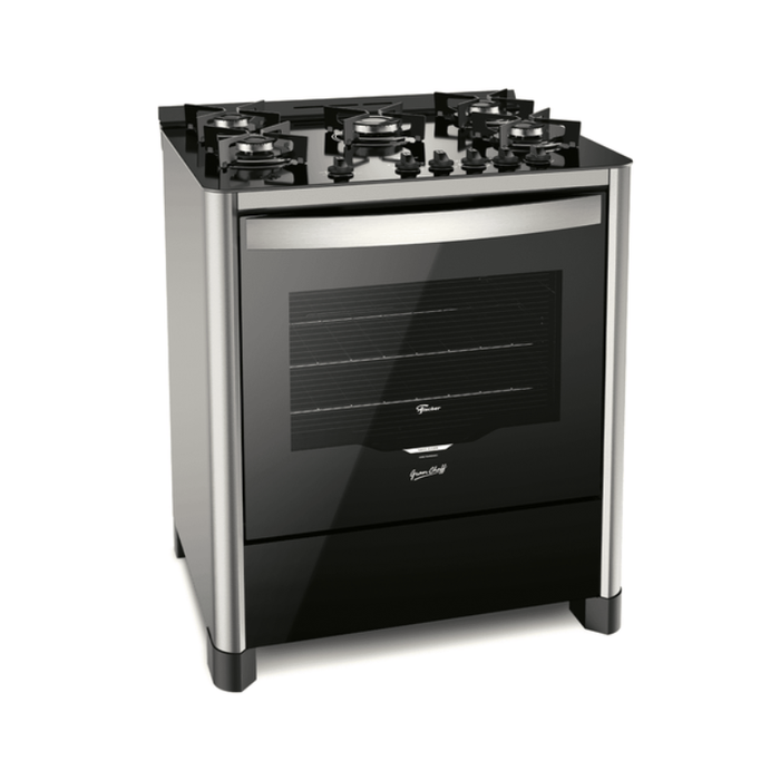 Fogão 5 Bocas Fischer de Piso a Gás Gran Cheff com Mesa de Vidro (26989)