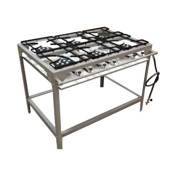 FOGÃO COMERCIAL 6 BOCAS ALTA PRESSÃO ALBASAN A GÁS COMPLETO COM REGISTRO GRELHA 30X30