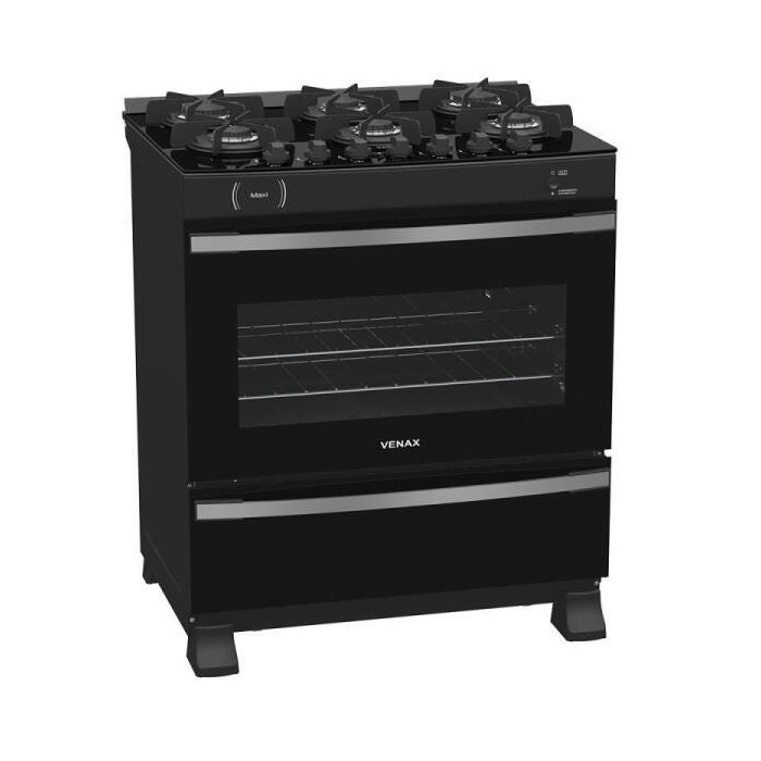 FOGAO 6 BOCAS VENAX MAXI VITREO PRETO FOSCO GAS GLP