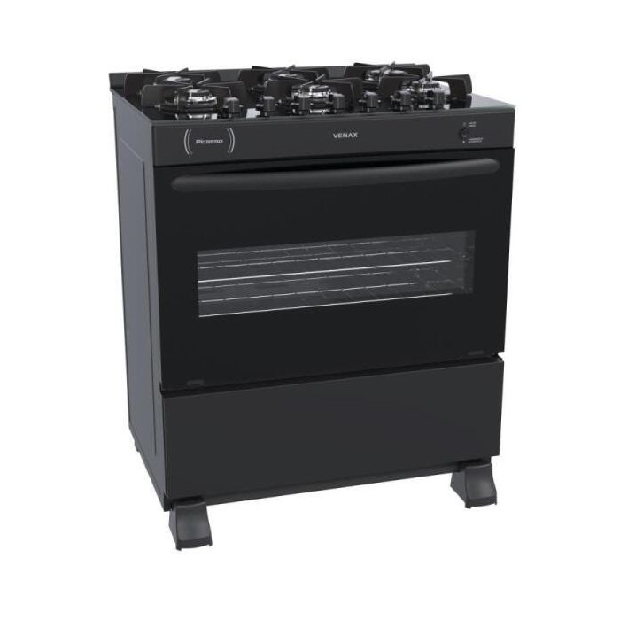 FOGAO 6 BOCAS VENAX PICASSO VITREO PRETO FOSCO GAS GLP