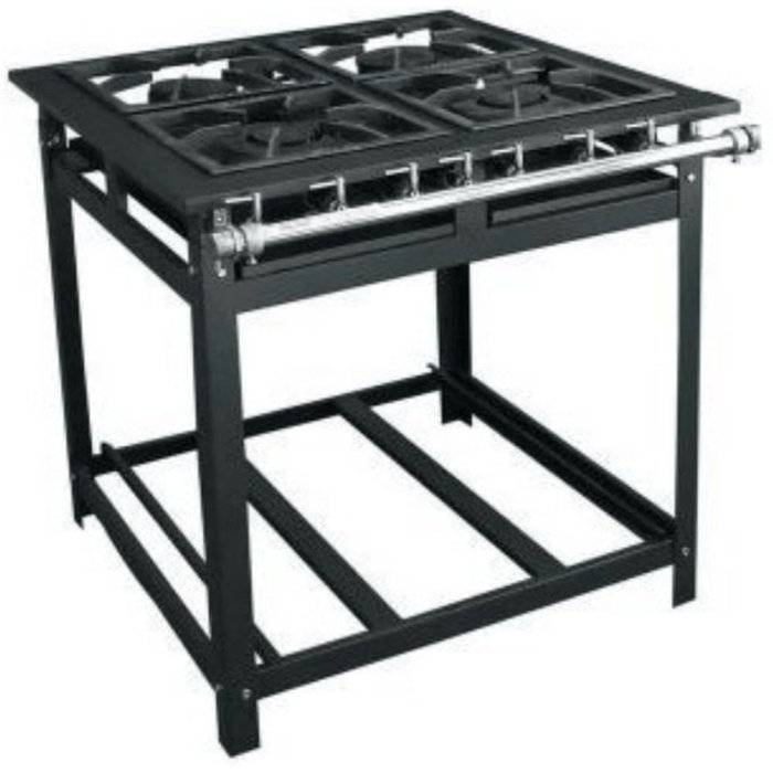 A linha de fogão Tradicional 40x40 é confeccionada em chapa de aço carbono com pintura Epóxi, seus queimadores são fabricados em ferro fundido nos modelos de Q. Simples, Q. Duplo nos modelos de baixa pressão as grelhas são confeccionadas em ferro fundido e apresentam o formato de 8 dedos, 40x40. Esta linha apresenta o tubo coletor de gás zincado e bandeja coletora de resíduos.