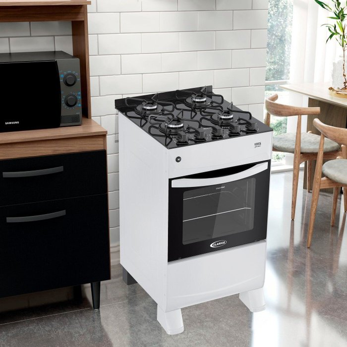 O fogão a gás de piso veritá gourmet com mesa de vidro e acendimento automático, conta com pintura esmaltada, entregando um produto pratico e funcional para entregar praticidade e amor de mãe nos momentos em família