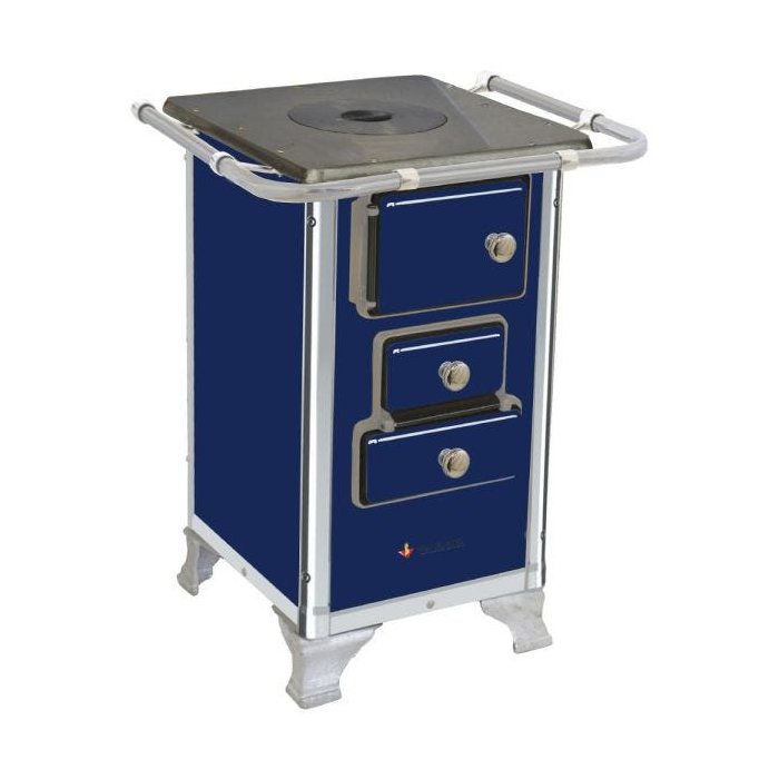 Fogão a Lenha Tradicional Número 00 Azul sem Tampa O Fogão a Lenha 00 é Pequeno, conta com corpo totalmente em aço carbono com acabamento esmaltado a fogo na pintura Azul. Seus pés são em ferro fundido com pintura em alumínio, contando também com cantoneiras em aço inox e guarnições em ferro fundido cromado garantindo qualidade exclusiva e um ótimo acabamento da peça. O Fogão é ótimo para aquecimento também, contando com chaminé traseira sendo modelo ideal para pequenas casas e espaços. Aqui você encontra os melhores modelos de Fogões tradicionais para o seu negócio! Informações Técnicas: Modelo: 00AZ sem Tampa Cor: Azul Chapa em ferro fundido com super polimento Corpo em aço carbono com acabamento esmaltado a fogo Pés em ferro fundido com pintura em alumínio Cantoneiras em aço inox Guarnições em ferro fundido cromado Puxador e escoras do varão em zamak com acabamento cromado Modelo com saída da chaminé traseira Peso: 46,5kg Medidas: Altura com pé: 590mm Altura sem pé: 670mm Largura: 525mm Profundidade: 500mm Chapa: 395x420mm