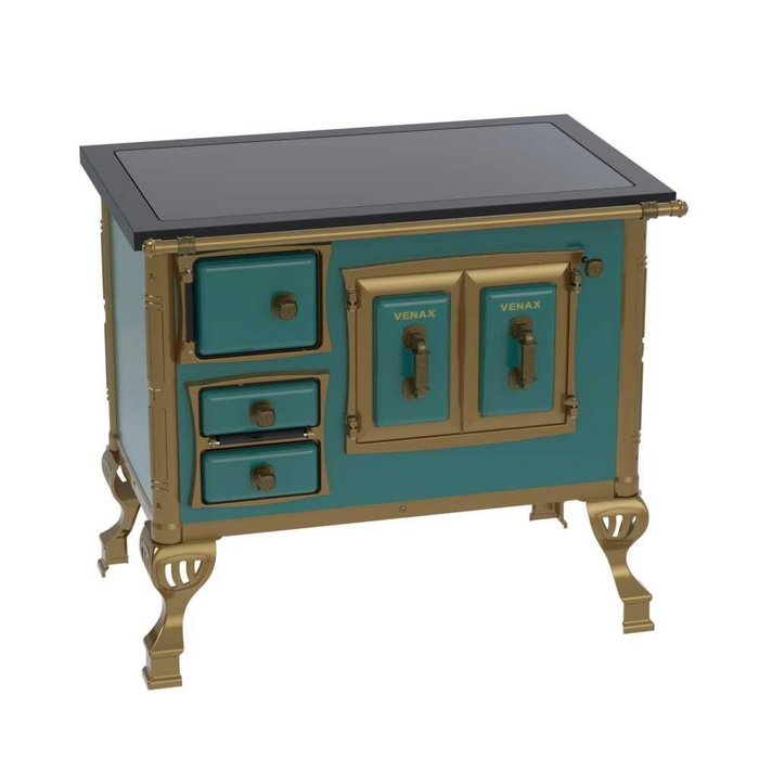Fogão a Lenha N° 01 Colonial Turquesa Chapa Vitrocerâmica Saída Direita sem Tampa - Venax