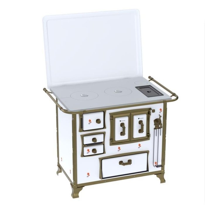 Fogao a Lenha N 2 Renaissance Chapa de Aluminio Branco Flor Cald Sd