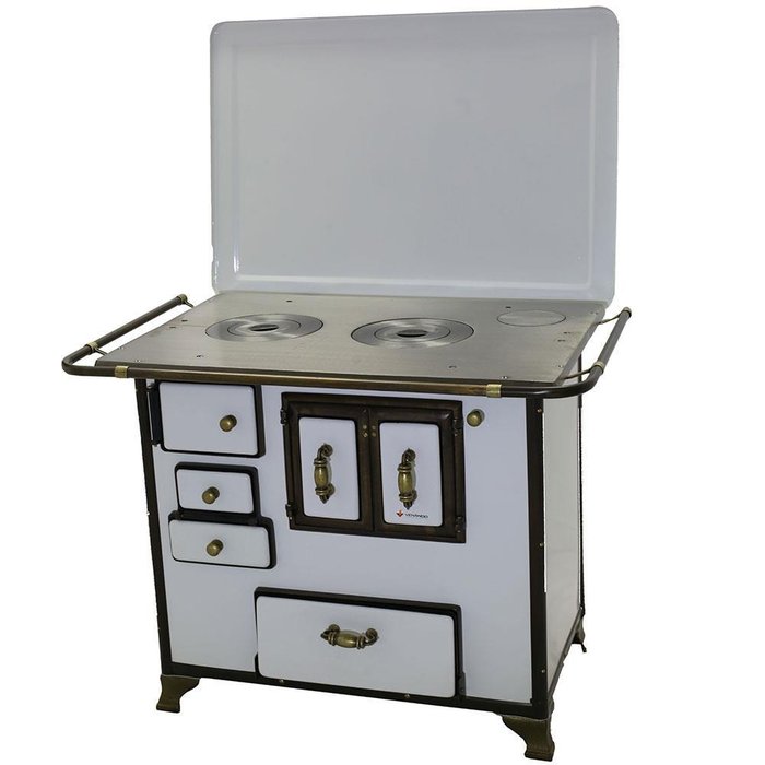 Fogão a Lenha Número 3 com Gabinete Venâncio Linha Barroco Nº03 Branco com Tampa Saída Chamin