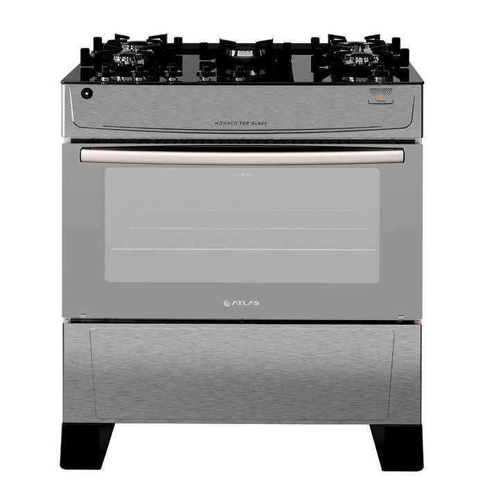 Fogão Atlas 5 Bocas Inox Mônaco Top Glass Com Acendimento Automático - Bivolt Esse incrível modelo da linha Mônaco Top Glass vai levar sofisticação e modernidade para sua cozinha. Feito em inox, ele conta com mesa de vidro temperado, com maior espaço entre as bocas, controle dos botões na mesa e trempes robustas, com 6 pontos de apoio, que garantem mais estabilidade para as panelas. Além disso, o acendimento é automático e os botões são removíveis, o que facilita na hora da limpeza. O puxador é amplo e ergonômico. Os pés são altos ; e o forno possui um amplo visor, que permite enxergar os pratos durante o preparo. Com capacidade de 86,5 litros e dimensões internas de64x30x45 cm, o forno ainda tem acabamento limpa fácil, 1 grade deslizante e vidro duplo na porta, que preserva melhor o calor. ;* Todos os nossos fogões saem de fábrica para funcionar com gás de botijão (GLP), mas podem ser convertidos gratuitamente para gás encanado ou de rua, caso haja necessidade. A conversão deve ser solicitada após a chegada do produto através dos nossos canais de atendimento e tem o prazo de 48 horas (após a solicitação) para ser feita.*;** Não faturamos para CNPJ neste canal**;Marca: AtlasVoltagem: BivoltCor: InoxLinha:MônacoTop GlassQuantidade de Bocas: 5 BocasTipo de Acendimento: AutomáticoGarantia: 1 anoAcabamento da Mesa: Vidro TemperadoInstalação: Fogão de PisoFuncionamento: GásTrempes: Individuais em Aço esmaltado com 6 pontos de apoioTampa superior: Não ;Grades do Forno: 1 Grade deslizante com 2 regulagens de alturaTimer Digital: Não ;Botões Removíveis: SimFabricação: NacionalSistema Corta Gás: SimAcabamento Forno: Limpa FácilCapacidade do Forno: 86,5LLuz no Forno: NãoVidro no Forno: Vidro DuploTurbo Convecção: NãoDimensões Internas do Forno:64x30x45cm(largura x altura x profundidade)Grill: NãoLargura: 75cmAltura: 87,9cmProfundidade: 59,5cm ;Potência dos Queimadores: 2Q Ramal de 1,7kW, 2Q Família de 2,0kW e 1Q Mega Chama de 3,0kW.Eficiência Energética: A ;Número de bocas: 5 | Voltagem: Bivolt | Marca: Atlas | RBN: 16745448011 | Quantidade de Bocas: 5 | Alimentação: a Gás | Cor: Inox | Linha: Mônaco Top Glass | Tipo de Acendimento: Automático | Garantia: 1 ano | Acabamento da Mesa: Vidro Temperado | Instalação: Fogão de Piso | Trempes: Individuais em Aço esmaltado com 6 pontos de apoio | Tampa superior: Não | Grades do Forno: 1 Grade deslizante com 2 regulagens de altura | Timer Digital: Não | Botões Removíveis: Sim | Fabricação: Nacional | Sistema Corta Gás: Sim | Acabamento Forno: Limpa Fácil | Capacidade do Forno: 86,5L | Luz no Forno: Não | Vidro no Forno: Vidro Duplo | Turbo Convecção: Não | Dimensões Internas do Forno: 64x30x45cm (largura x altura x profundidade) | Grill: Não | Largura: 75cm | Altura: 87,9cm | Profundidade: 59,5cm | Potência dos Queimadores: 2Q Ramal de 1,7kW, 2Q Família de 2,0kW e 1Q Mega Chama de 3,0kW. | Eficiência Energética: A