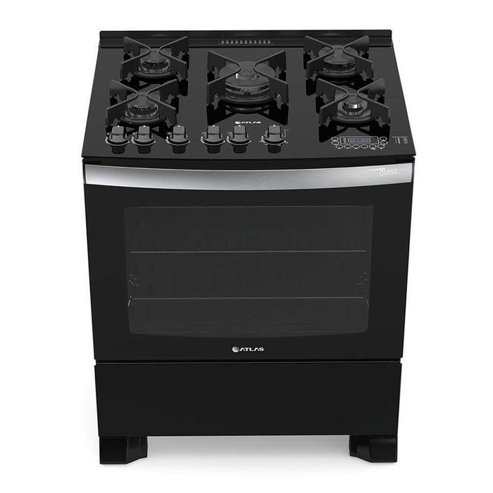 Fogão Atlas Top Gourmet Glass 5 Bocas Preto Bivolt