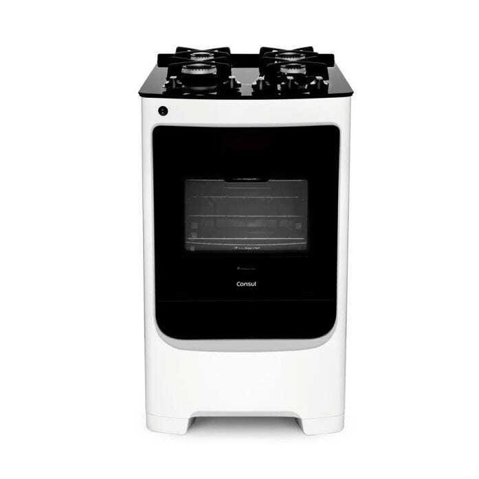 Fogão Consul 4 Bocas Branco com Mesa de Vidro e Trempe de Ferro Fundido - Cfo4Vab