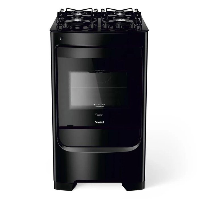 Fogão Consul 4 Bocas Mesa de Vidro Grades Individuais Super Estáveis Preto Cfo4vbe