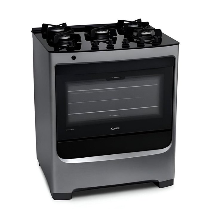 O novo Fogão Consul 5 Bocas Mesa de Vidro Inox tem o moderno design frente única com menos recortes, e mesa de vidro temperado com grades de ferro fundido. Seu design foi pensado para aguentar os preparos do dia a dia e deixar sua cozinha linda sempre. Para isso, conta com o Forno Limpa + Fácil, junção da tecnologia Cleartec e do vidro interno vedado, que evita o acumulo de gordura e deixa tudo mais fácil para limpar e organizar. CARACTERÍSTICAS - Mesa de Vidro TemperadoSeu design se assemelha aos práticos e modernos cooktops, permitindo que a limpeza seja feita com menos esforço e tempo. - Grades de Ferro FundidoGrades individuais robustas de ferro fundido com design pensado para aguentar os preparos do dia a dia. - Forno Limpa + FácilUnião da cavidade Cleartec + Vidro interno Vedado. - Vidro Interno VedadoO vidro interno do forno é vedado, evitando o acúmulo de gordura ou sujeira entre os vidros da porta. - Gaxeta IntegralA vedação nessa região, ajuda a não aumentar a temperatura do produto e evita o amarelamento das suas peças externas. - Grades DuplasGrades duplas esmaltadas de fácil remoção, com design desenvolvido para fornecer grande estabilidade e sem cantos retos para facilitar a limpeza. - 1 Prateleira Desliz. AjustávelForno com prateleira deslizável e ajustável em 3 alturas, o que facilita o uso e fornece diversas opções de preparo. - Pés Duplo CliquePés frontais de fácil instalação, em dois cliques é possível posicionar os pés no fogão. Os pés traseiros são rosqueados, permitindo uma regulagem para ajudar na estabilidade do fogão. - Manípulos RemovíveisManípulos removíveis que garantem uma maior facilidade de limpeza. - Acendimento AutomáticoFacilidade na hora do preparo INFORMAÇÕES TÉCNICAS Marca: BrastempModelo: CFS5VARVoltagem: Bivolt DIMENSÕES APROXIMADAS DO PRODUTO Largura: 76,6cmAltura: 94,8cmProfundidade: 63,5cm DIMENSÕES APROXIMADAS DO PRODUTO COM EMBALAGEM Largura: 79,5cmAltura: 99cmProfundidade: 72cm PESO APROXIMADO Peso do produto: 39kgPeso do produto com embalagem: 43,5kg GARANTIA 12 meses
