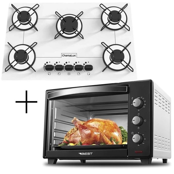 Fogão Cooktop 5 Bocas Branco + Forno de Eletrico 48 Litros 127v
