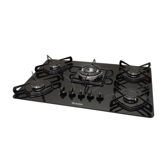 Fogão Cooktop À Gás 5 Bocas Quadrichamas Black Braslar
