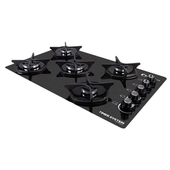 Acabaram os esquecimentos do Fogão ligado! Arroz queimado nunca mais! O Fogão Cooktop à gás 5 bocas com tremps de Ferro Fundido e exclusiva tecnologia TIMER SYSTEM da Eletros Inteligentes, traz para sua vida segurança e praticidade! O sistema reduz os riscos de acidentes ao esquecer o Fogão ligado, como comida queimada, derretimento de panelas e até mesmo incêndios. ÚNICO com temporizadores individuais em que você pode escolher o tempo de cozimento, e ele irá desligar o fogo (gás) de forma automática! Para garantir à sua segurança, o tempo máximo de programação é de 60 minutos. Fácil religamento! Este modelo apresenta 3 "bocas" com timer, e 2 "bocas" sem timer. Dessa forma você pode escolher se deseja usar as bocas com o temporizador ou as bocas convencionais na hora de cozinhar! Atenção! O Cooktop é fabricado para o tipo de gás que será usado. Este modelo é para o gás GLP (botijão - gás liquefeito de petróleo). Certifique-se do tipo de gás que você utiliza e escolha o modelo correto no momento da compra! Caso você precise deste produto equivalente para o GN (gás natural), busque pelo anúncio com o código TS53CPFN. Informações do produto: Tempo máximo de programação é de 60 min, podendo ser religado facilmente; Possui 3 bocas com à tecnologia TIMER SYSTEM e 2 bocas convencionais permitindo à escolha do uso adequado; Tamanho do nicho para embutir: 62cm x 36cm; Tamanho da mesa de vidro:72cm x 46cm; Eficiência energética classe A; Certificado pelo INMETRO atendendo todas normas de segurança; Alimentação bivolt 110/220; O sinal sonoro e visual (LED piscando) irá avisar você no momento em que desligar à chama automaticamente; Acendimento super automático; Tremps com design exclusivo fabricadas em Ferro Fundido encaixadas em suportes com formato de losango, isso garante maior fixação e apoio para as panelas; Queimadores com um ótimo volume de chama, permitindo cozinhar rapidamente e com maior economia de gás; Dois queimadores rápidos com 3000 W com timer; Um queimador semi rápido com 1750 W com timer; Dois queimadores semi rápido com 1750 W; Este produto necessita da energia elétrica para o acionamento do gás nas bocas com timer; Agora que você já conhece os benefícios e à exclusiva inovação do Fogão Cooktop TIMER SYSTEM da Eletros Inteligentes, aproveite e realize sua compra! Estamos à disposição para esclarecer qualquer dúvida. Entre em contato conosco, será um prazer lhe atender!