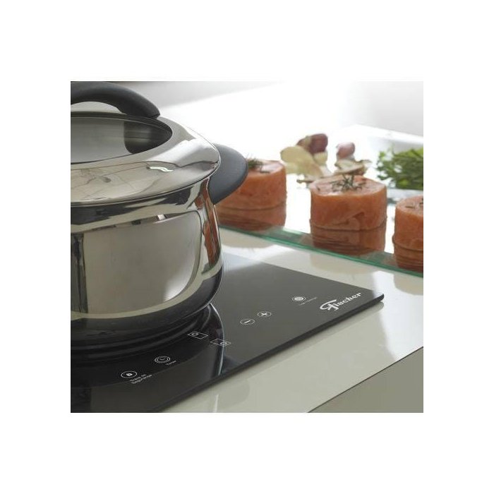 O Fogão Cooktop Fischer por indução está aliado ao que é de mais recente em tecnologia no mercado. O princípio de funcionamento, parte da geração de um campo eletromagnético que aquece instantaneamente apenas à panela posicionada no local indicado, atingindo altas temperaturas em poucos segundos. Essa tecnologia, permite mais segurança e agilidade na cozinha. Com controle touch screen (sensível ao toque), mesa vitrocerâmica, dois queimadores, trava de segurança e 9 níveis de potência. Possui ainda sistema indicador de superfície quente e sensor de panela. Código de barras 7896513317819 Voltagem 220v Consumo (KW/h) 3,5 kWh Dimensões Produto -cm (AxLxP) 58 x 288 x 520 mm Eficiência Energética 3,5 kwh Painel Touch Screen Marca Pimentinhas Kids Termostato Sim Acendimento Elétrico Tipo de Fogão Cooktop Formato de instalação Indução / Dimensões do nicho de instalação (LxP) Conteúdo da Embalagem 01 Cooktop / 01 Manual de instruções / 01 Rede de postos autorizados / 04 Presilhas metálicas / 04 Parafusos da presilha Garantia do Fornecedor 12 Meses Funções Timer / Display digital / Trava de segurança / 09 níveis de potência / Sensor de panela / Indicador de superfície quente Referência do Modelo 25941-56249 Material/Composição Mesa vitrocerâmica 4mm Peso Aproximado do Produto (Kg) 5,10 kg Cor Preto Mais Informações Comprimento do Cabo de Alimentação 1,50m / Produto Certificado pelo INMETRO (Portaria 371) Fabricante Fischer Quantidade de Bocas 2 Características dos queimadores Área de cocção com diâmetro de 140mm (1500W) e 180mm (2000W) Potência (W) 3500W